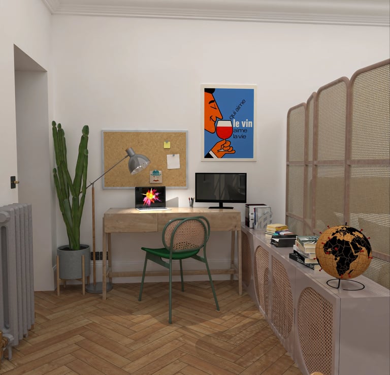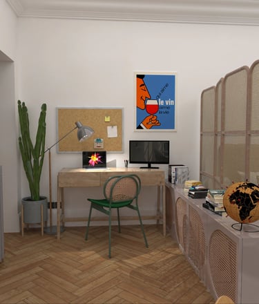 Однако необходимо грамотно спланировать эту главную комнату так, чтобы в ней был рабочий кабинет, небольшая гостиная, обеденный стол и спальня. Для реализации этого проекта мы используем нестандартные элементы мебели и декоративные аксессуары, подобранные так, чтобы гармонировать с богемным стилем помещения. Цель создать теплую и гостеприимную атмосферу, максимально используя функциональность каждой зоны.