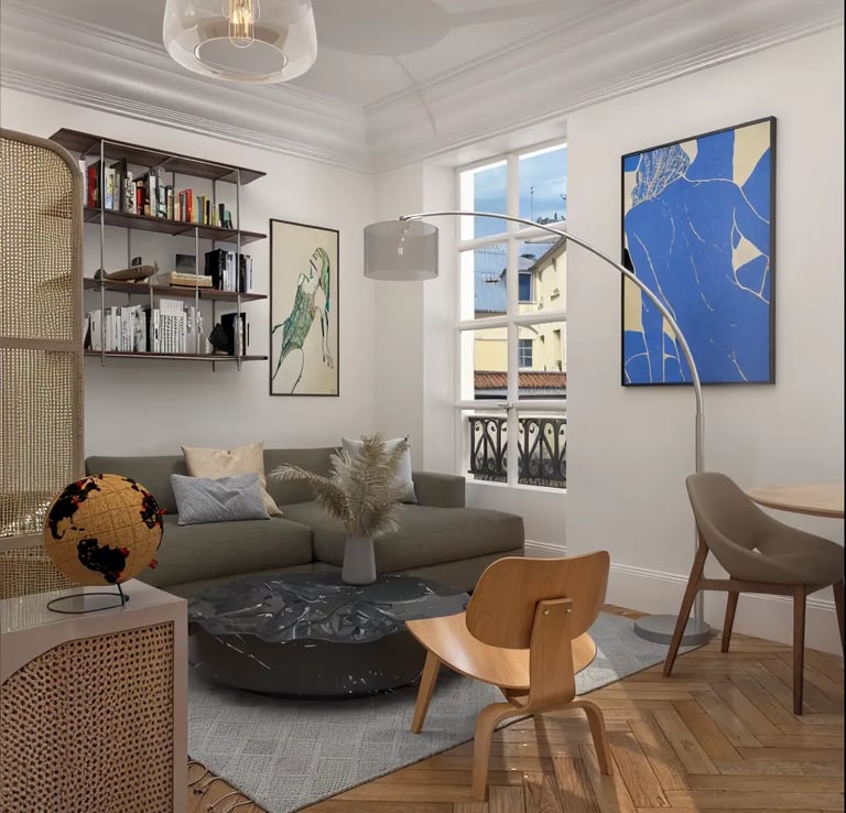 Проект Montbauron расположен прямо в центре исторического центра Версаля, у этого проекта своя особенная атмосфера. Основная наша задача сосредоточена на основной комнате этой квартиры, не затрагивая прихожую, кухню и ванную комнату. Особенность этого проекта заключается в том, что большую главную комнату необходимо оставить свободной от каких-либо построек. Ни в коем случае нельзя трогать ажурность его лепнины, придающей этому помещению всю элегантность.